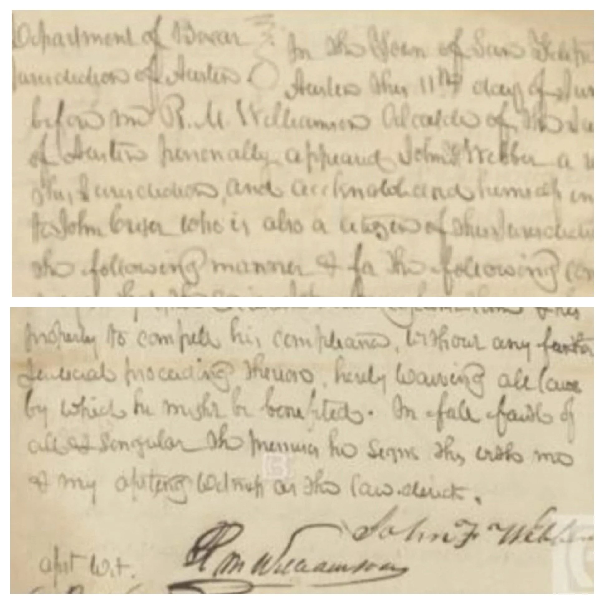Legal bond executed by John F. Webber in Mexican Texas to secure the freedom of Silvia and their children. Establishes the family’s legal