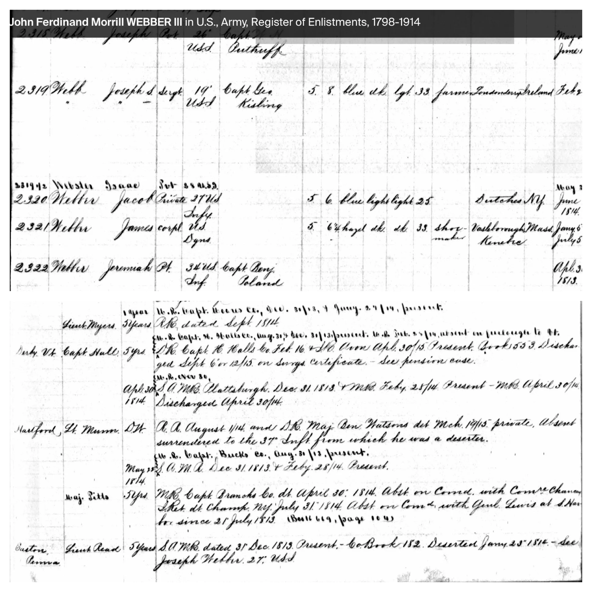 Register of Enlistments entry for John F. Webber, 31st U.S. Infantry.