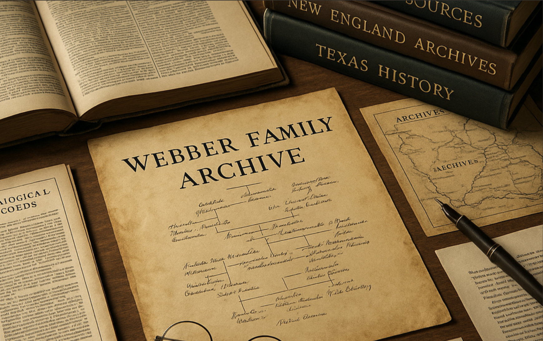 The Webber Chronicle employs authenticated primary-source research corroborated across federal, state, county, and university archival repositories. Documentary evidence—including census schedules, probate inventories, land deeds, military ledgers, and pension records—is cross-referenced to ensure historical continuity and legal accuracy.